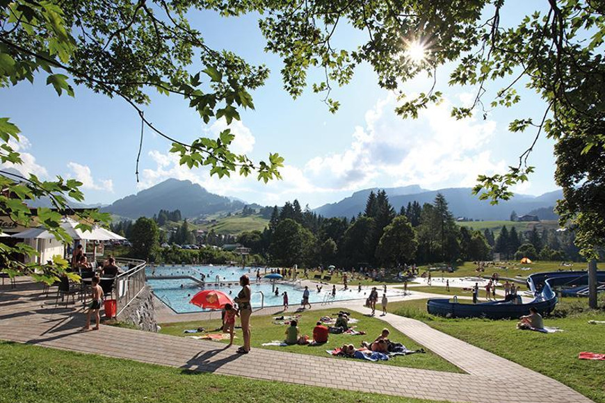 Im Freizeitbad Riezlern lässt es sich gut verweilen: beim 3-Meter-Sprungturm, der 32-Meter-Wasserrutsche, unter dem Wasserpilz oder an Land beim Tischtennisspielen.ÖffnungszeitenEnde Mai bis Anfang September: 9 bis 20 Uhr